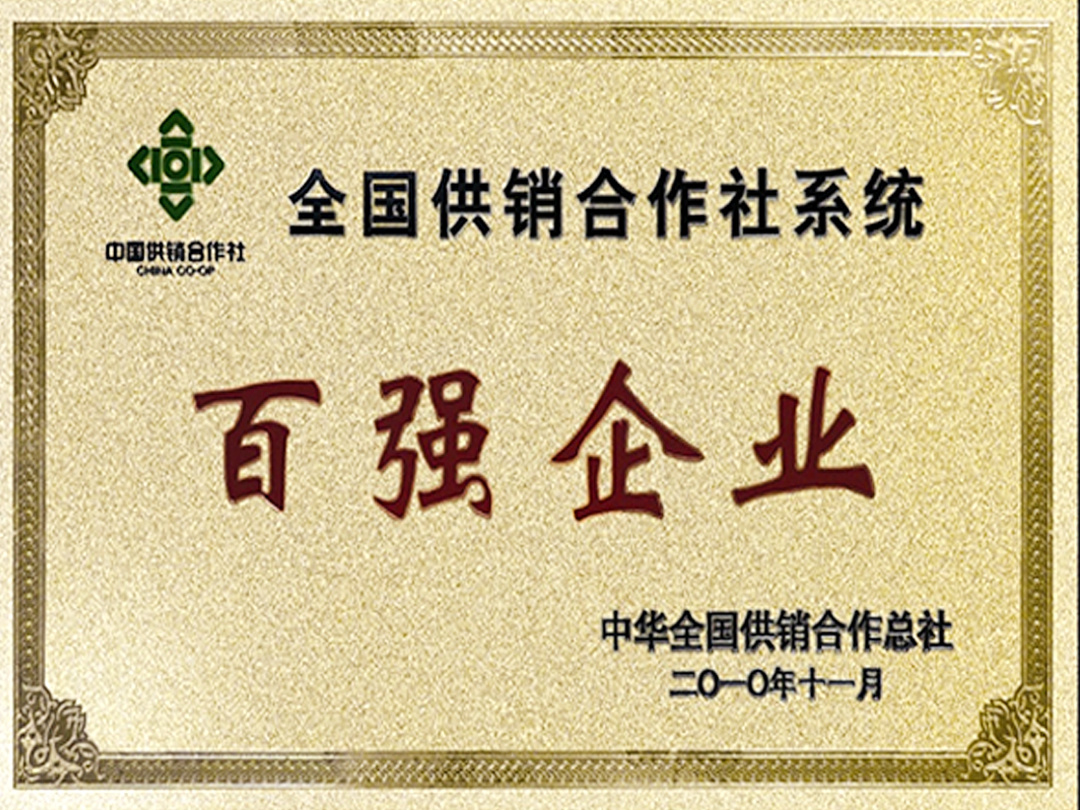2010年 銀豐集團榮獲全國供銷合作社系統百強企業稱号